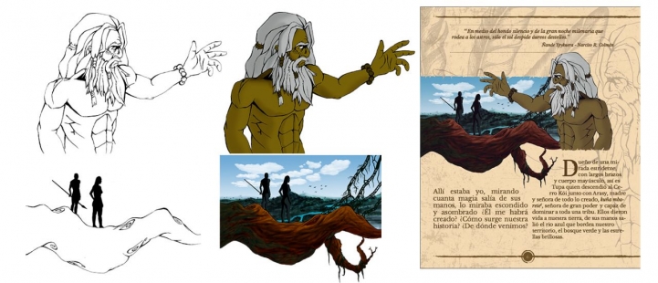 Mitología Guaraní consiste en un material de índole educativo, ilustrado en su totalidad, siguiendo una secuencia de narración en ambos idiomas oficiales. El respeto a nuestras riquezas naturales, el valor innegable al bilingüismo, mitología viva en cada habitante de nuestra nación, son solo algunas de las formas no habituales que contiene “Pyhare Ñe’e” a la hora de plantear la enseñanza a través de narraciones e ilustraciones.